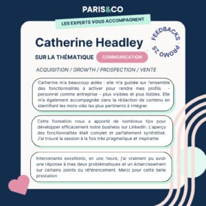 Au sein de cette dynamique, Catherine Headley intervient aux côtés des entrepreneurs pour les aider à clarifier leur positionnement, structurer leur stratégie digitale et d’acquisition, et renforcer leur visibilité, dans un environnement exigeant et en constante évolution.